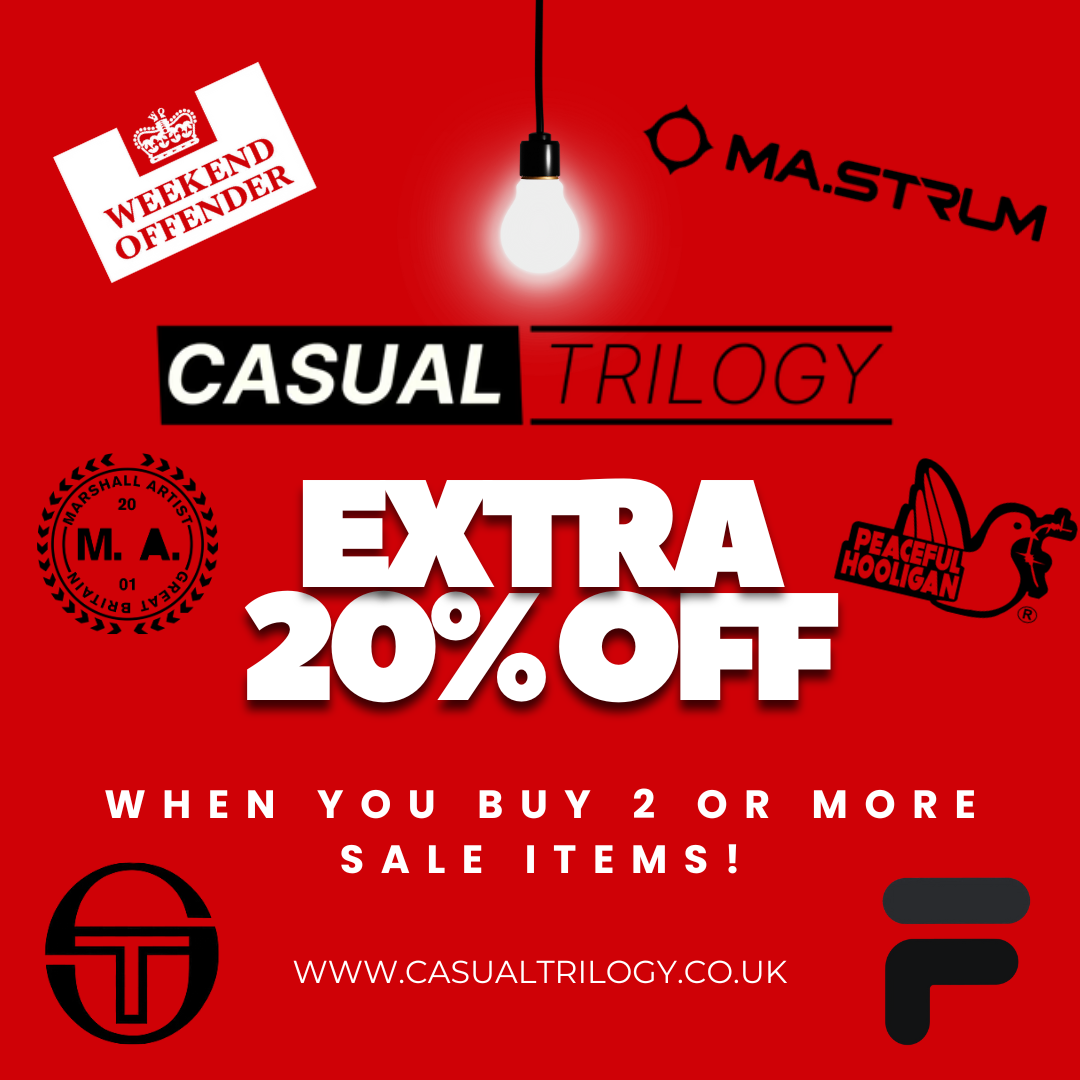 Born from the minds of three disgruntled friends, questioning the clothing options available to them in their sad commuter town just North of Bristol. Jack, Sam, and Tom are on a mission to bring you the finest selection of garments fit for the terraces. So, join the fun, embrace the irony, and dive headfirst into the world of clobber with Casual Trilogy.